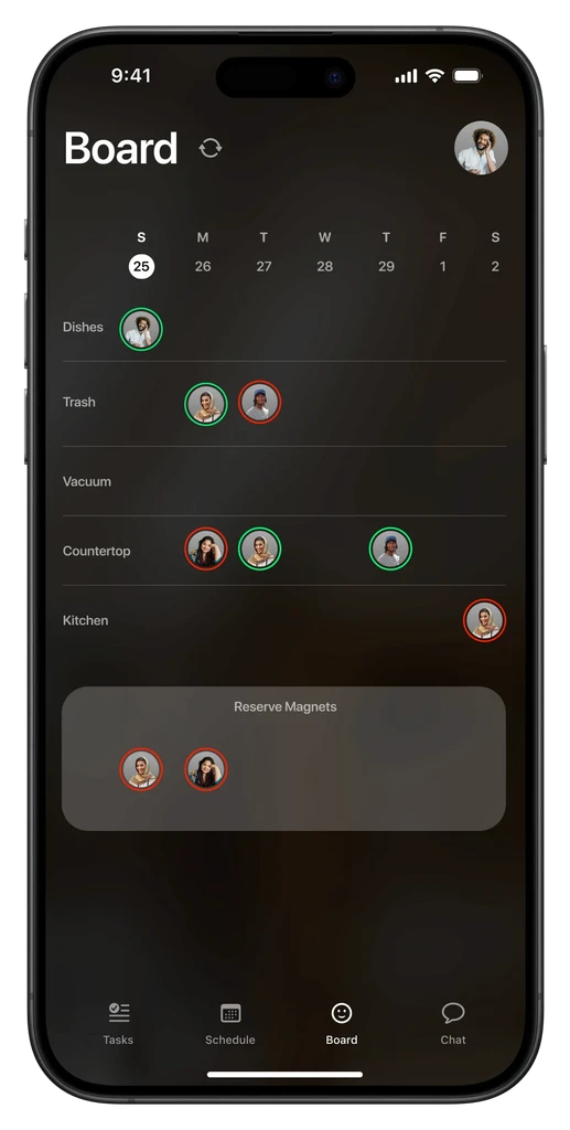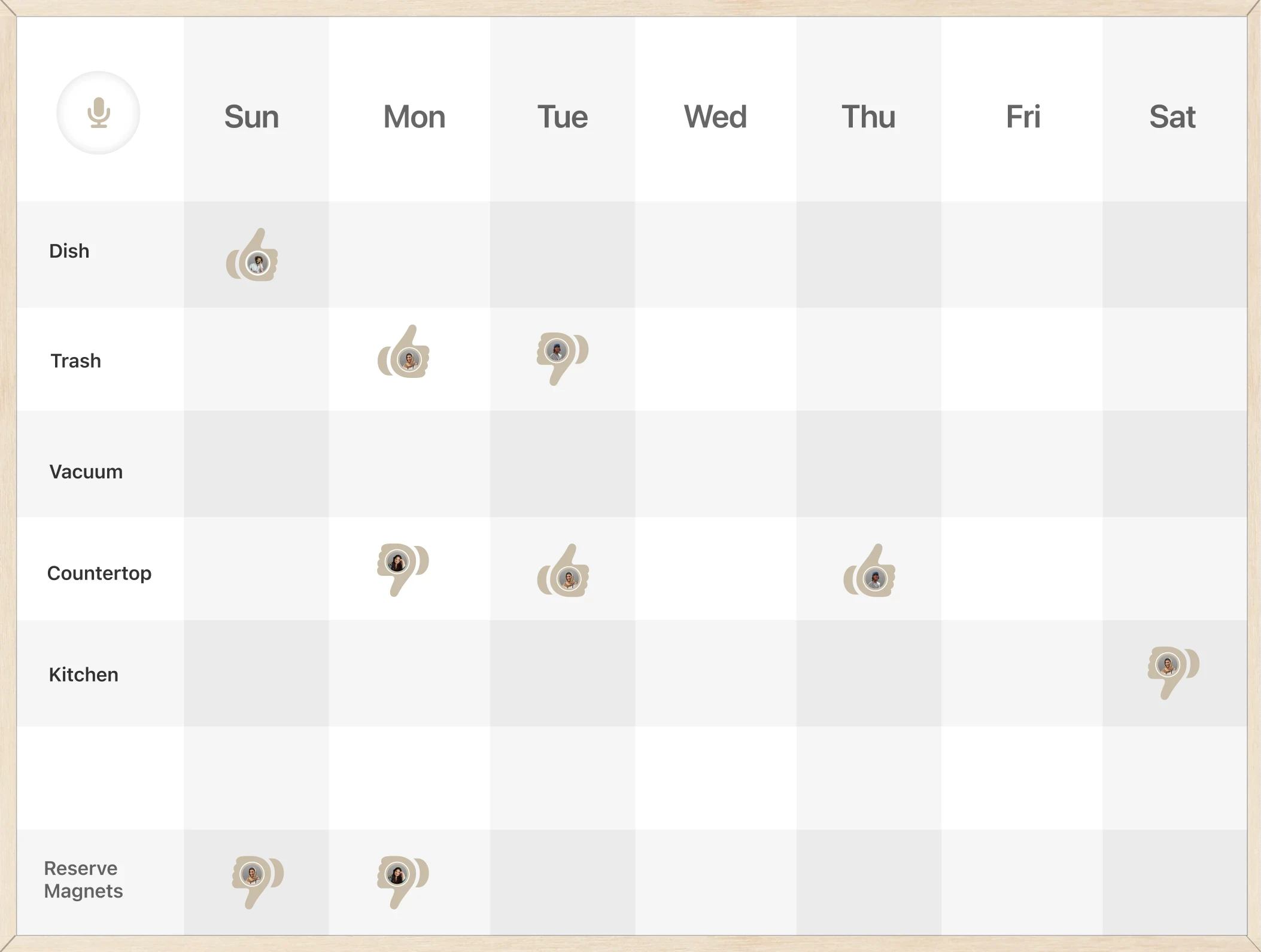 The visual representation of the board on their phone helps hold roommates accountable for their responsibilities.
