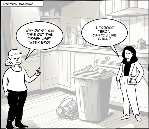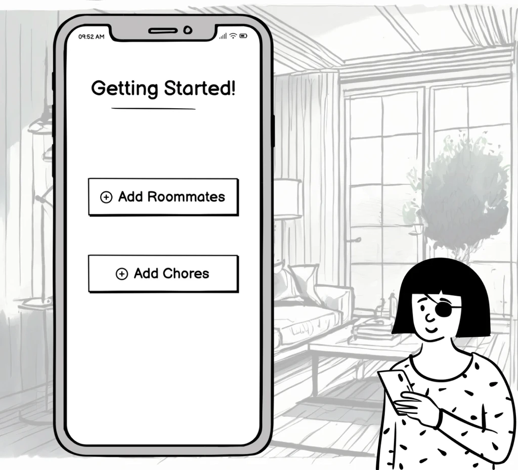 To set the context of this project, a storyboard was created to walk us through the problem space. Here, we see 2 roommates arguing over an incomplete household chore. The issue at hand is primarily the lack of communication between the two and no systematic approach to such chores.