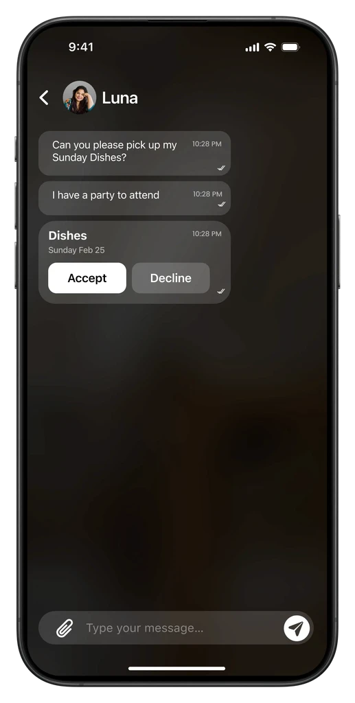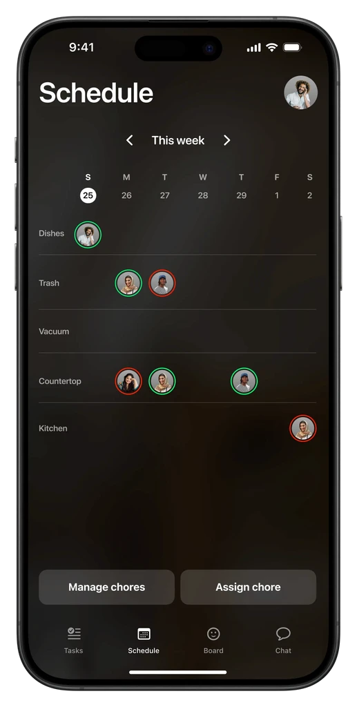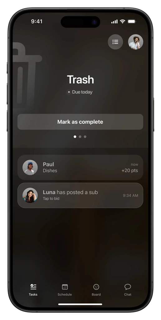 Roommates can easily view and adjust the status of tasks on the synced schedule on the go.