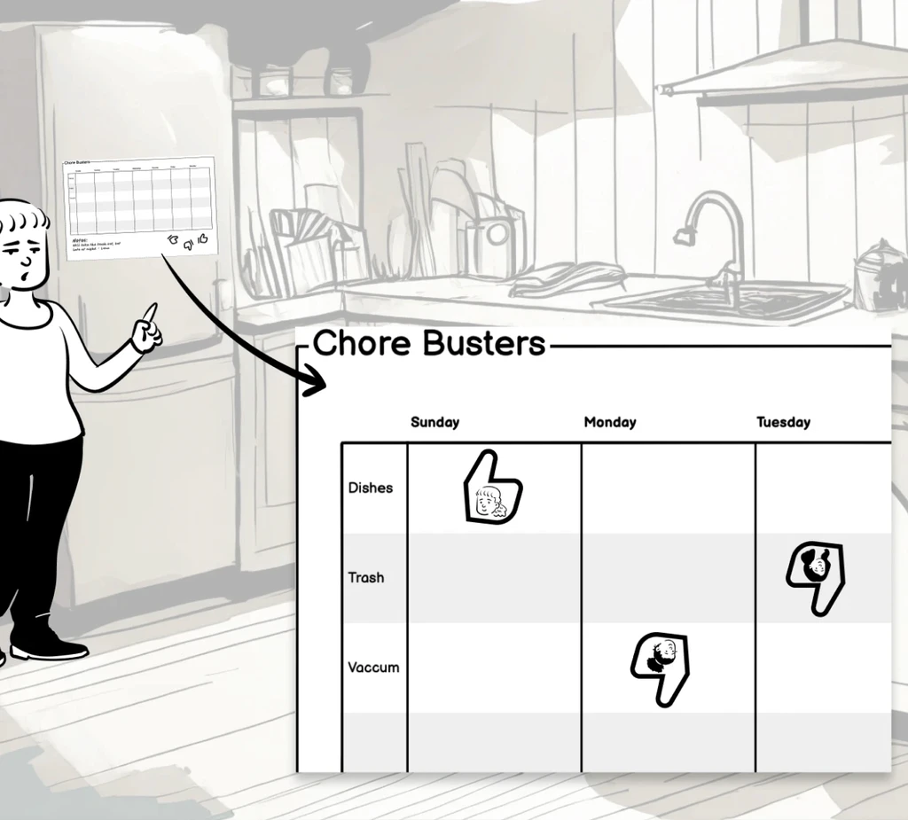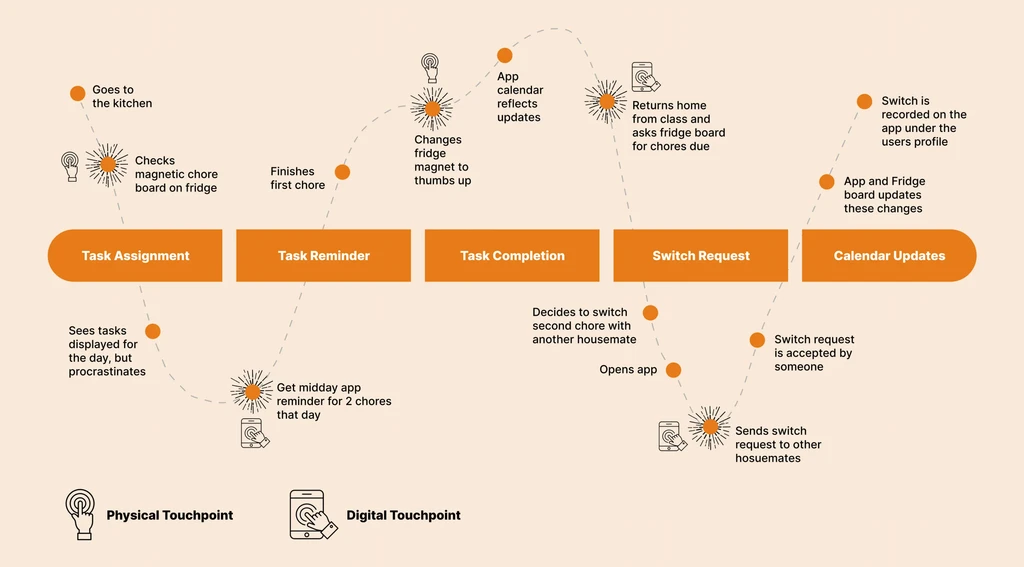 The goal is to create a seamless experience across physical and digital channels in order to increase transparency and maintain a systematic method of chore management.
