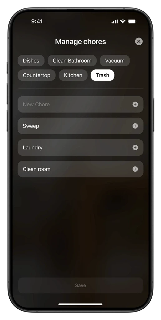 A clear and simple onboarding process helps roommates customize their personal preferences, collective list of chores, and chore frequency.