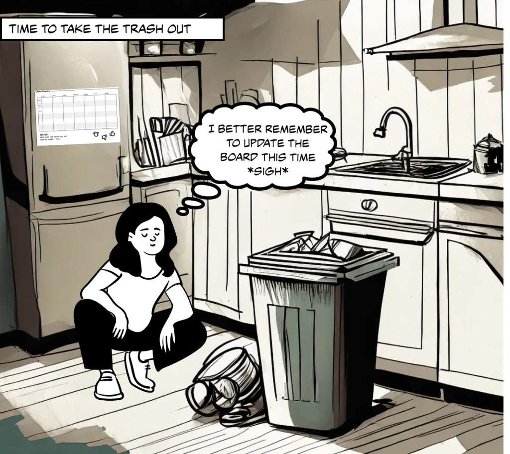 Serves as a daily reminder to roommates on the board for tasks due and helps hold each member accountable.